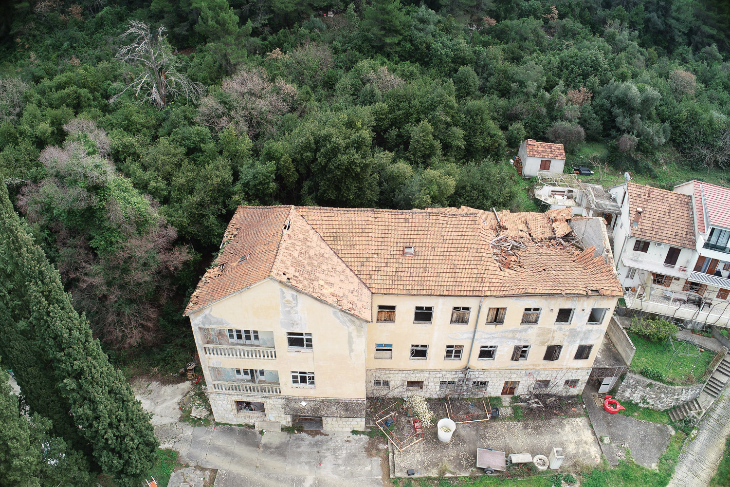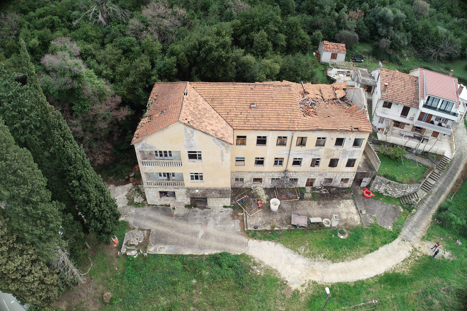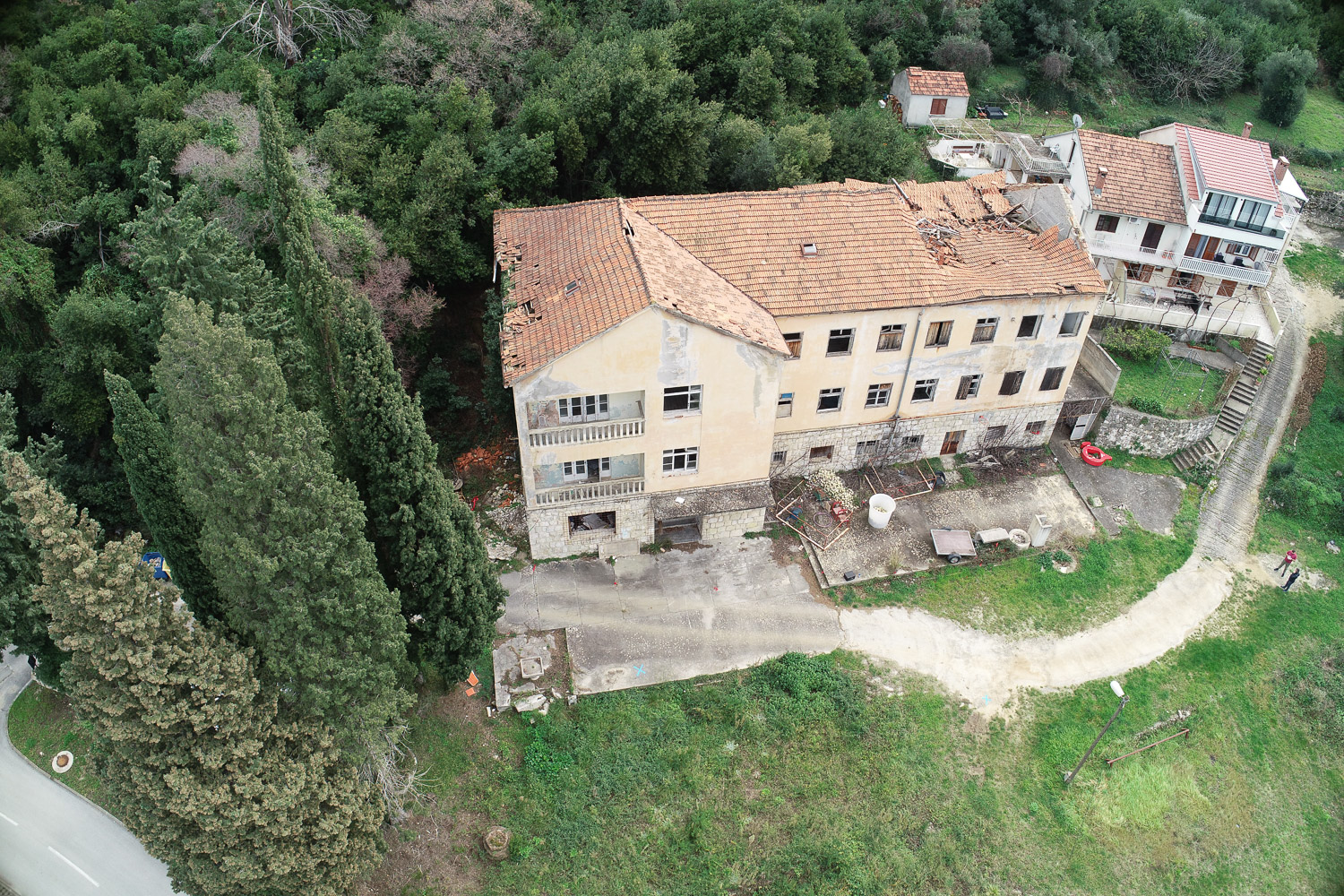 Postojeća zgrada se ruši do razine prizemlja. Vanjski zidovi prizemlja sa oblogom masivni kamen se konstrukcijski ojačavaju.