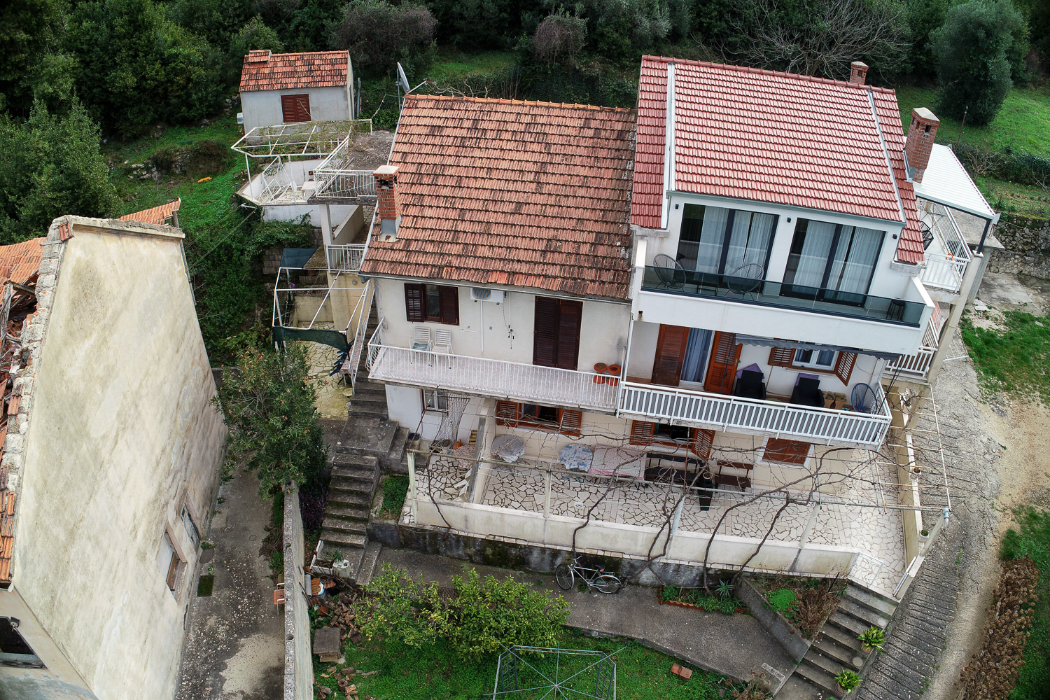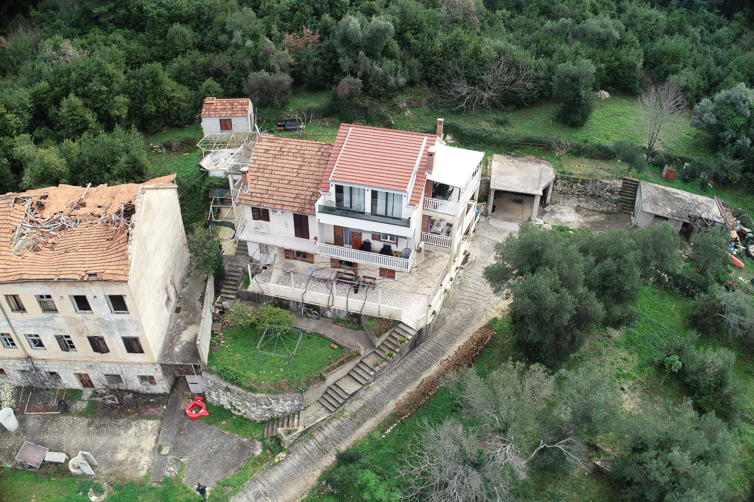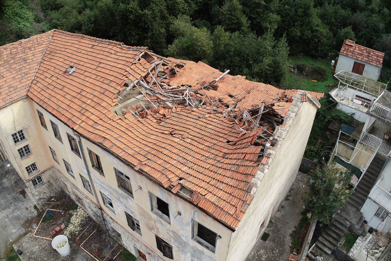 Postojeća zgrada se ruši do razine prizemlja. Vanjski zidovi prizemlja sa oblogom masivni kamen se konstrukcijski ojačavaju.