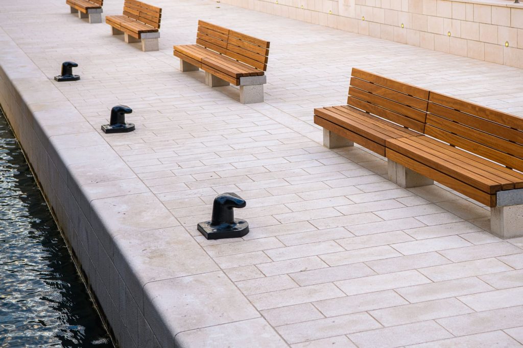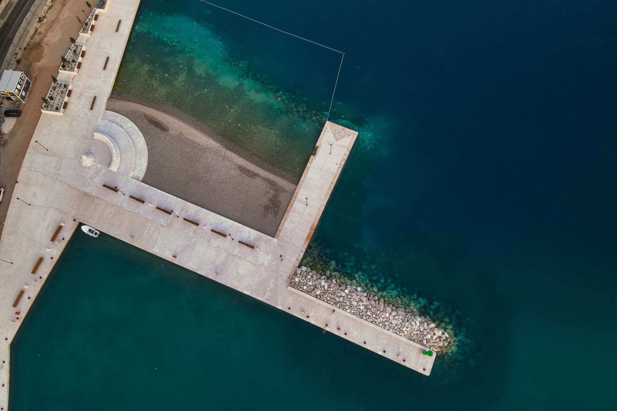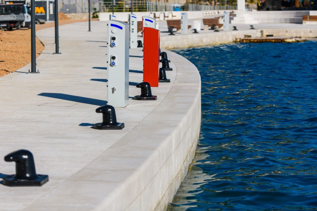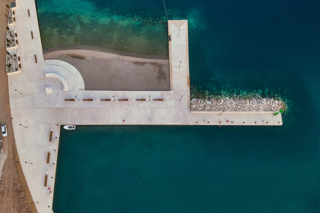 Tlocrtna površina ovako novonastale građevine u morskom dijelu iznosi 7435 m2. Namjena predmetne građevine je luka otvorena za javni promet, s realizacijom javne šetnice – Rive. Dionice nove privezne obale, po karakteru priveza, mogu se podijeliti na dionice: